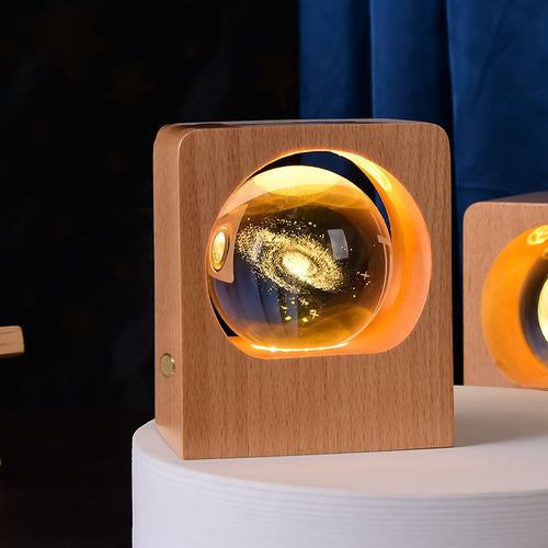 Beech Crystal Ball Night Light 3D Laser Engraving Elk Jellyfish LED Nightlights USB Dimmable Lamp For Bedroom Decoration Gifts Home Decor
